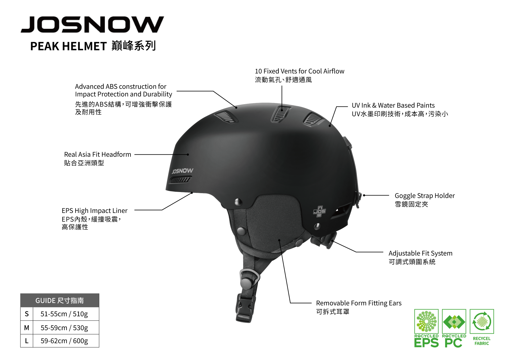 The PEAK Series embodies JOSNOW’s commitment to professionalism, durability, safety, and comfort. Built with an advanced ABS outer shell for superior impact resistance and long-term durability, it’s designed for riders who value both performance and style.