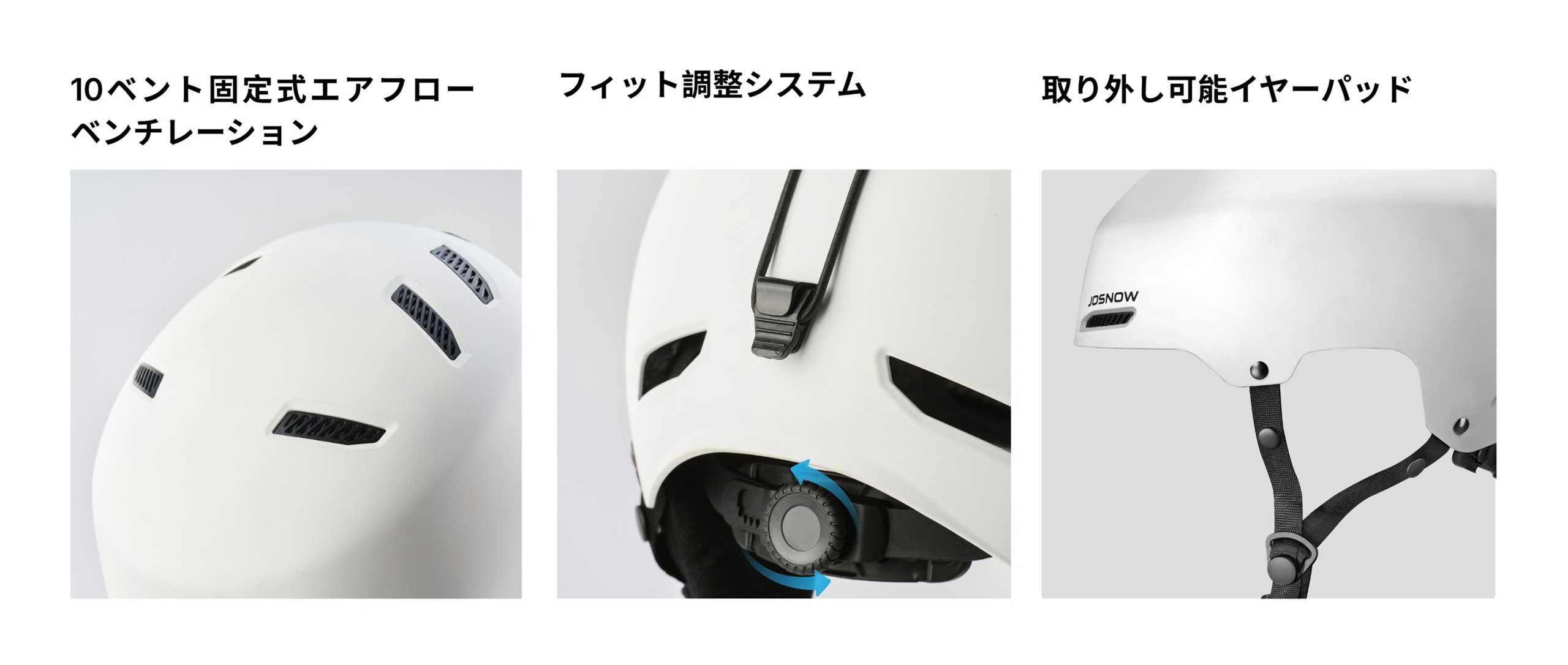 独自のハイブリッドヘッドフォーム設計と高精度フィットアジャストシステムの組み合わせにより、東洋・西洋いずれの頭型にも自然にフィットし、快適な装着感を実現。さらに、着脱可能なイヤーパッドを採用し、季節や気候、地形に応じて柔軟に対応しながら、安全で快適なスキー体験を提供します。