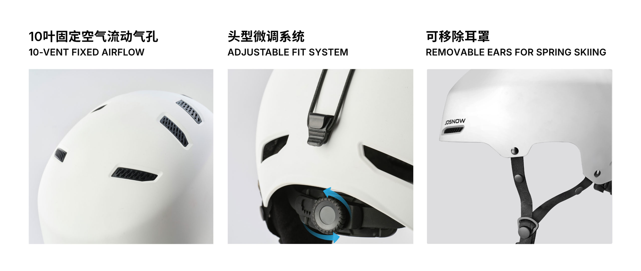 JOSNOW PEAK 系列衍伸品牌一致的专业,保护和坚固滑雪頭盔理念,Peak系列使用先进的ABS 结构增强冲击保护和全面的耐用性 ,坚固轻巧EPS内壳缓撞吸震高度保护性。10叶固定空气流动气孔舒适通风 ,简约、坚固且精致的设计,专为重视性能与风格的滑雪者打造。